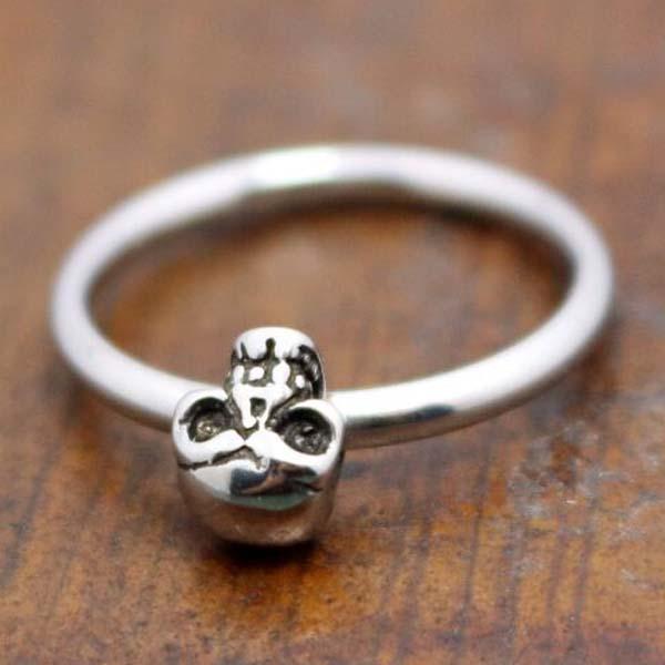 細身のシンプルなステンレスリングに飛び出すようにスカルをデザインしたスタイリッシュな指輪です。素材も安心のサージカルステンレス316L製。