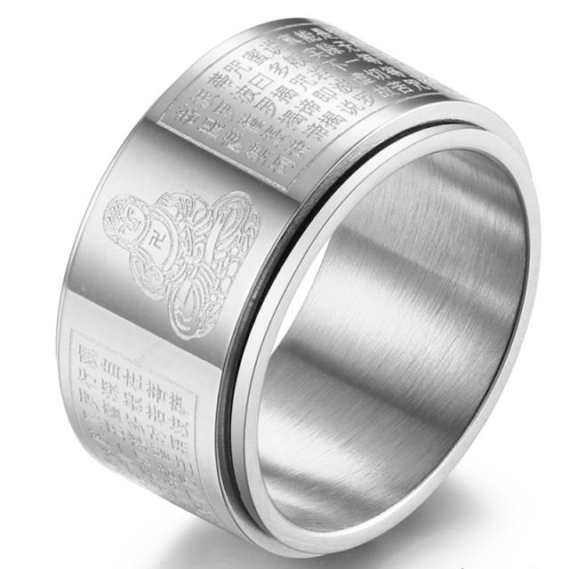 [般若心経と仏陀をデザインしたクルクル回るステンリング 男性 女性 彼氏 彼女]