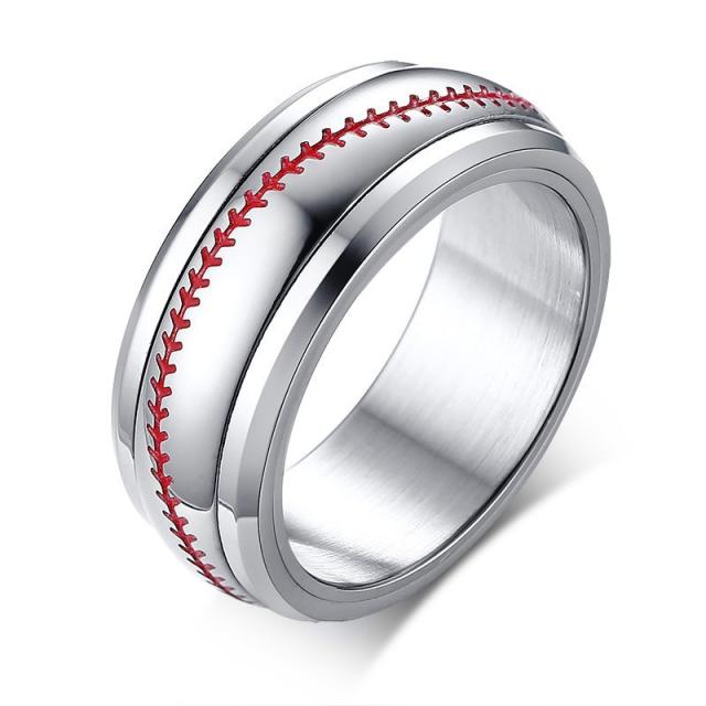 野球のボールをモチーフにした面白いステンレスリング。しかも真ん中の部分がクルクル回るおもしろスピンリング。