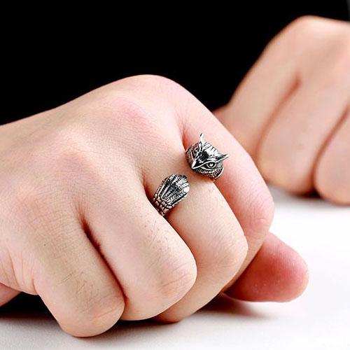 オウルステンレスリング(PRB016)サイズ/15号/16号/17号/18号/19号/20号/25号/26号/27号/28号/29号/30号/31号/32号/33号/34号 フリーサイズ ふくろう 梟 鳥 バード おもしろ 立体 3D 指輪 サージカルステンレス316L メンズ レディース ペアリング プレゼント 大きい