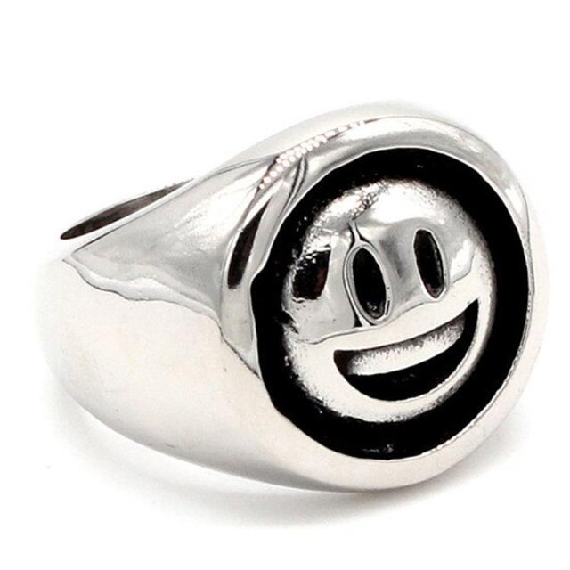 印台型でスマイル君をデザインしたお洒落でかわいいサージカルステンレス316L製の指輪です。