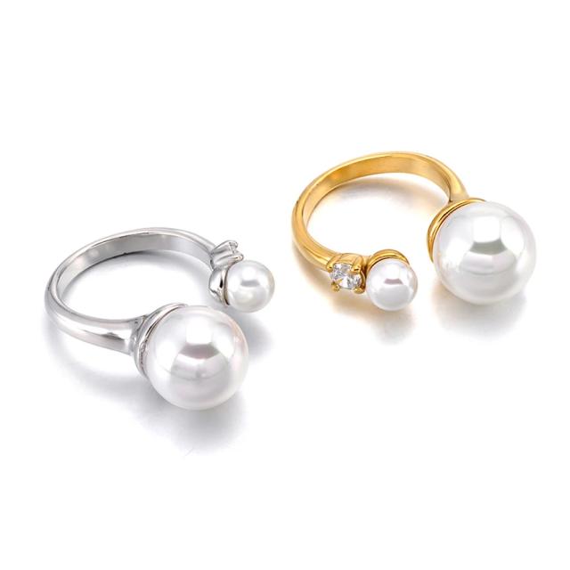 ダブルパールジュエル ステンレスリング(RAD022) サイズ/17号 フリーサイズ 真珠 キュービックジルコニア ストーン 石付き ファランジリング 指先の指輪にも サージカルステンレス316L メンズ レディース ペアリング プレゼント ギフト 結婚 婚約 シルバー ゴールド