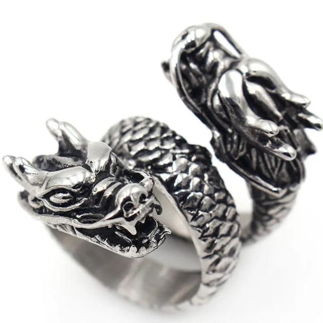 双頭の竜をデザインした重厚感あるサージカルステンレス316L製の指輪。