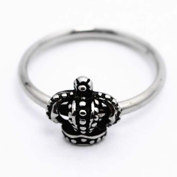 細身のシンプルなステンレスリングに飛び出すように王冠をデザインしたスタイリッシュな指輪です。素材も安心のサージカルステンレス316L製。