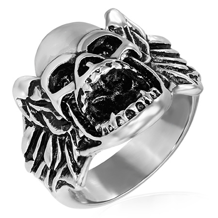 ゴブリンとスカルを融合させた不気味なステンレスリング。