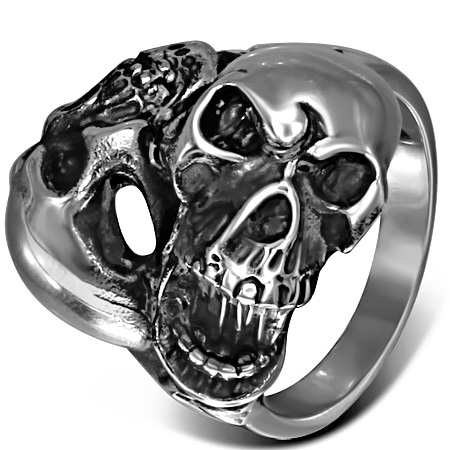 2体のドクロが不気味に微笑むステンレスリング。