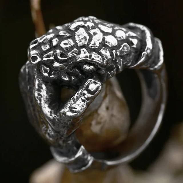 片手が蛇になったユニークなサージカルステンレス316L製の指輪。