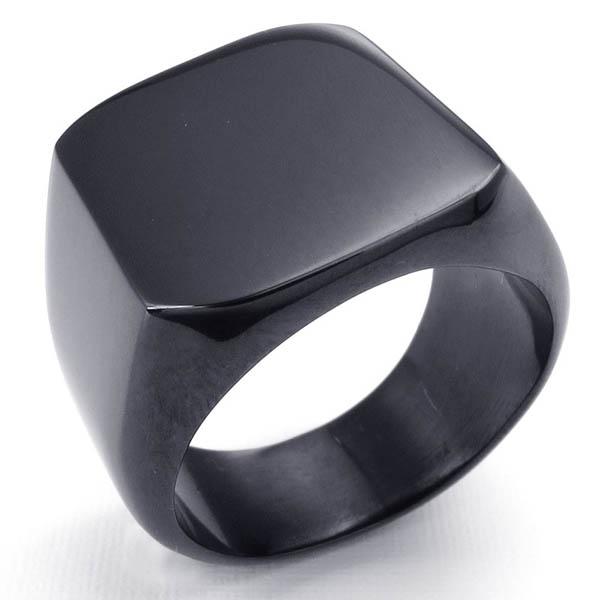 ブラック印台型ステンレスリング(RRR023) サイズ/18号/20号/21号/29号/31号 シンプル 黒色 ハンコのような指輪 サージカルステンレス316L メンズ レディース ペアリング プレゼント ギフト 結婚 婚約 記念日 誕生日 男性 人気 サイズが大きい ギフト