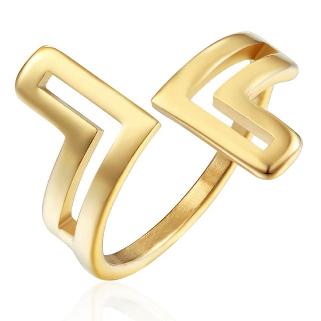 四角形のL字型の形を重ねたユニークな高級感のあるフリーサイズのステンレスリング。