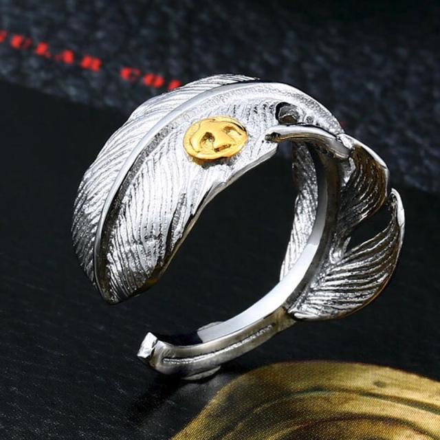ホワイトシルバー風 ゴールドイーグルエンブレムフェザーステンレスリング(RWI022) サイズ/15号/16号/17号/18号/19号/20号/21号/22号/23号/24号/25号/26号/27号/28号/29号/30号/31号/32号/33号/34号 フリーサイズ 人気 指輪 サージカルステンレス316L メンズ レディース