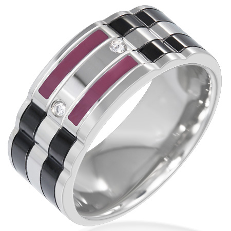 センチュリーステンレスリング(SRV161)サイズ/16号/26号 個性的な色合いの指輪 パープル ブラック サージカルステンレス316L メンズ レディース ペアリング プレゼント ギフト 結婚 婚約 記念日 誕生日 ピンキーリング ファランジリング