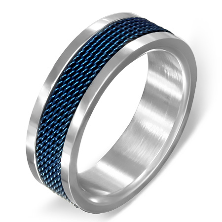 ブルーメッシュステンレスリング(SRV184)サイズ/14号 青色 おもしろ指輪 サージカルステンレス316L メンズ レディース ペアリング プレゼント ギフト 結婚 婚約 記念日 誕生日 ピンキーリング ファランジリング