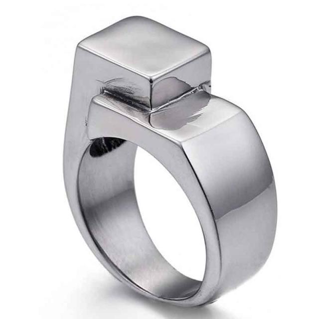 まるで階段のような段差のあるユニークなサージカルステンレス316L製のステンレスリング。