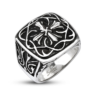 アンティークなクロスをモチーフにしたステンレスリング。