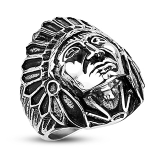 インディアンステンレスリング(STR030)サイズ/33号 顔 おもしろ 大きいサイズの指輪 サージカルステンレス316L メンズ レディース ペアリング プレゼント ギフト 結婚 婚約 記念日 誕生日 ピンキーリング ファランジリング