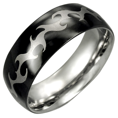 ブラックトライバルステンレスリング(URA014)サイズ/16号 黒い甲丸リングの指輪 黒色 サージカルステンレス316L メンズ レディース ペアリング プレゼント ギフト 結婚 婚約 記念日 誕生日 ピンキーリング ファランジリング