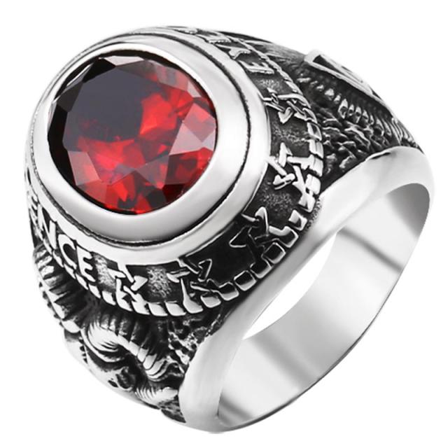 デーモンチャンピオン ステンレスリング/レッド(VRR166)サイズ/18号/21号/22号/24号/28号/31号/33号 悪魔 サタン 赤色 キュービックジルコニア 楕円形 オーバル ピラミッド 眼 目 アイ 山羊 ゴート ヒツジ 未 羊 印台型 チャンピオンリング 指輪