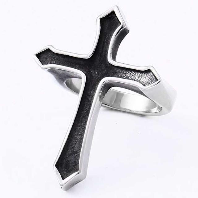 まるで墓標のような大きな十字架をデザインした存在感のあるステンレスリング。シンプルなクロスだからこの大きさにこだわったおしゃれなステンリング。
