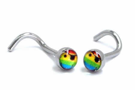 [ 18G ボディーピアス 鼻 ] レインボーギャング 鼻ピアス 18GA 18ゲージ サージカルステンレス316L ボディピアス メンズ レディース ノーズスクリュー ノーズスクリュウ ツイストシャフト 男性 女性 ネジボール ノストリル 海賊 眼帯 スマイルくん スマイル君 虹色 ポップ