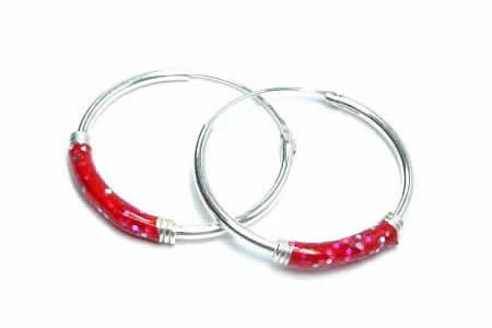 シンプルなリングのトップにキラキラのラメカラーをコーティングした可愛いリングピアス。程よい大きさとキラキラのカラーリングが存在感を出すオシャレなシルバーピアスです。細身のリングピアスなので、この大きさでも嫌な感じはしない。重ね付けにもお奨めのラメピアスは、カラーバリエーションも豊富なので、スタイルによって色々付け替えたいピアスです。