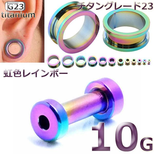 [ 10G 虹色 チタングレード23 ] レインボーチタントンネル 10ゲージ 10ga ボディピアス ホール系 金アレ メンズ レディース ネジタイプ スクリュー 土管型 プラグ プレーン ホールトゥピアス ニッケルフリー 耳 インチ ボディーピアス チタン合金 チタン合金 拡張 G23