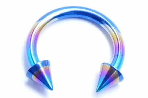 金属アレルギーを引き起こしにくいチタンピアスを虹色に発色させたサーキュラーバーベル型のボディピアス。肌に優しい低アレル ギーとされるチタンピアスは、ファーストピアスやセカンドピアスとして使える。アレルギーを引き起こしやすいといわれるニッケルを含んでいないのでアレルギーの人でも安心。色鮮やかにカラーリングされてますが、鍍金(メッキ)ではなく、発色させて いるので、色が剥離する心配がないので、色々な場所に使えるボディーピアスです。ゲージサイズや内径サイズ、コーンサイズまで選べるので、自分に合ったサ イズのピアッシングが可能に!耳たぶだけじゃなく、ヘリックスやトラガス、クチピアスなどなど幅広いピアッシングに使えるカラーチタンピアスです。