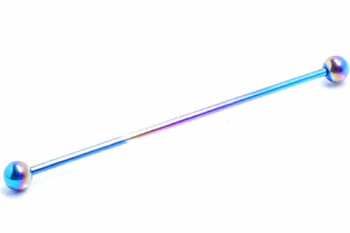 [インダストリアル用 16G チタングレード23] レインボーチタンメガバーべル 細い ボールタイプ 虹色 16ゲージ ストレートバーベル ボディピアス チタン 長いバーベル ロングバーベル 軟骨 耳たぶ つなぐ メンズ レディース 内径が長い ニッケルフリー ファースト