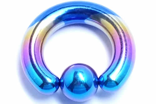 [4G 高品質 チタングレード23] レインボーチタンキャプティブビーズリング 4ゲージ 太いチタン合金製ハイポリッシュ ボディピアス メンズ レディース ファーストピアス セカンドピアス 拡張後 ニッケルフリー リング型 虹色 内径 大きい 小さい 耳 乳首