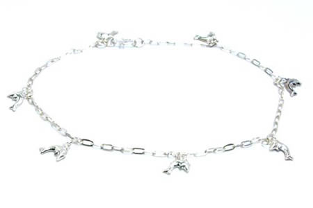 イルカをモチーフにしたシルバーアクセサリーは女性に人気が高く、ポップな雰囲気からカジュアルなスタイルまでどんなスタイルにも合わせてみたくなるアンクレットです。