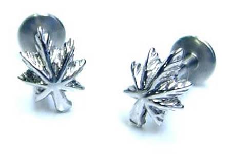 マリファナをモチーフにしたカジュアルななインターナルラブレット(逆ネジタイプのラブレット)。逆ネジタイプなので肌を傷つけにくく、素材も医療用のサージカルステンレスなので肌に優しいピアスです。内径サイズも選べるので、普通のピアスとしても使えるし、ヘリックスやトラガスへの軟骨ピアスやクチピアスにも使えるお勧めのボディジュエリーです。デザインも大きすぎないので、さりげなく使えるのもポイント!男女を問わないユニセックスなデザインが人気の秘訣!