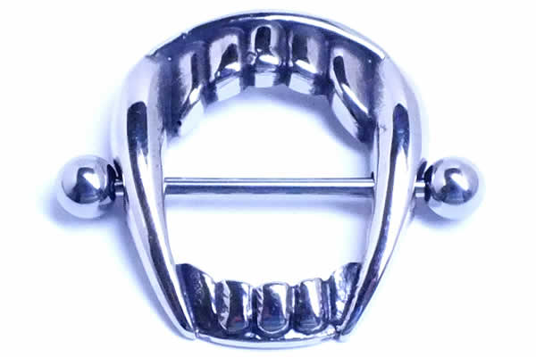 [ 14G ニップル 乳首 ] サーベルタイガーニップルピアス ストレートバーベル 歯 口 牙 おもしろ 面白い オモシロ シールド 14ゲージ 胸 乳輪 ボディピアス メンズ レディース サージカルステンレス316L ボディーピアス 乳首ピアス ジュエリー 別売り16Gに変更可能