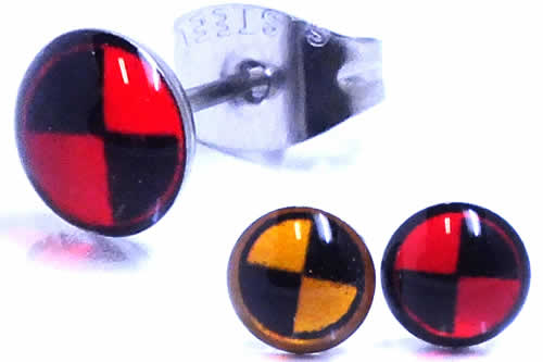 自動車の衝突などでも使われるターゲットマークをモチーフにしたピアス。どこかで見たことあると思った人も多いはず。大きさも程よく、耳たぶだけでなくヘリックスピアスにもオススメのピアス。ボディーピアスの素材としてよく使われる医療用のサージカルステンレスを通常のピアスサイズで製作した人気のステンレスジュエリー。また素材が比較的低アレルギーとされる医療用サージカルステンレスなのでファーストピアスにも利用できるサージカルピアス。また、ステンレスは丈夫で軽量なので、毎日使いにもオススメのキャッチピアスです。ステンピアスは初心者から上級者まで愛用できる。しかも、単品販売(片耳売 り)なので、無駄なく、手頃な価格でゲットできるステンレスアクセサリー。もちろん、ボディピアスやシルバーアクセサリーとの相性もばっちり!デザインが豊富でプレゼントにも最高!