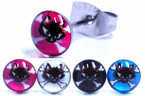 可愛い猫とクールな骨をデザインしたパンクでポップなステンレスピアス。プチパンク好きの彼女にお奨め!大きさも程よく、耳たぶだけでなくヘリックスピアスにもオススメのピアス。ボディーピアスの素材としてよく使われる医療用のサージカルステンレスを通常のピアスサイズで製作した人気のステンレスジュエリー。また素材が比較的低アレルギーとされる医療用サージカルステンレスなのでファーストピアスにも利用できるサージカルピアス。また、ステンレスは丈夫で軽量なので、毎日使いにもオススメのキャッチピアスです。ステンピアスは初心者から上級者まで愛用できる。しかも、単品販売(片耳売 り)なので、無駄なく、手頃な価格でゲットできるステンレスアクセサリー。もちろん、ボディピアスやシルバーアクセサリーとの相性もばっちり!デザインが豊富でプレゼントにも最高!