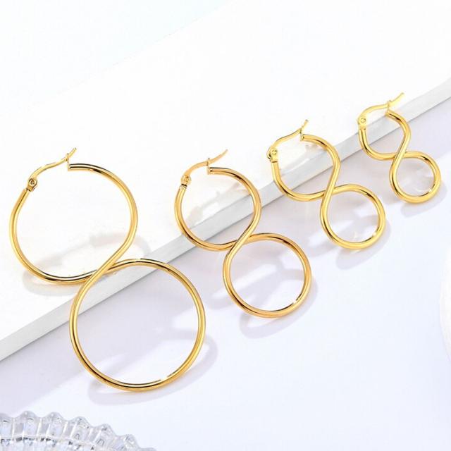 数字の8や無限の∞のマークのようなユニークなステンレス製のフープピアス。