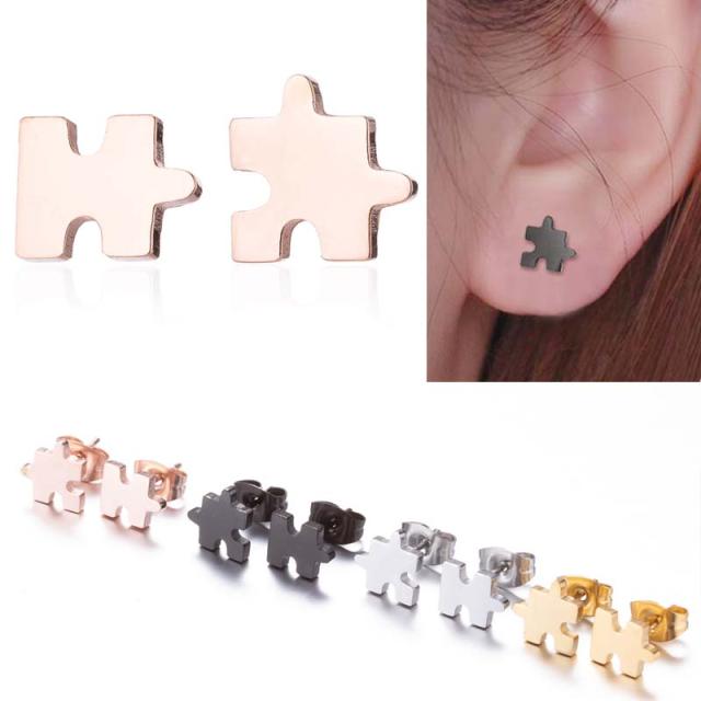 ジグソーパズルのピースをデザインした遊び心のある面白いステンレスピアス。