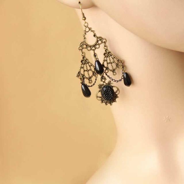大きなビジューとクラシカルなフォルムが綺麗なステンレスピアス。手作りハンドメイドのステンレスピアス。ゴシックロリータなスタイルにもボヘミアンスタイルにも幅広い服装にコーディネートできるピアスです。手作りなので、暖かみのあるデザインがプレゼントにも人気!フック部分がステンレスなので安心。