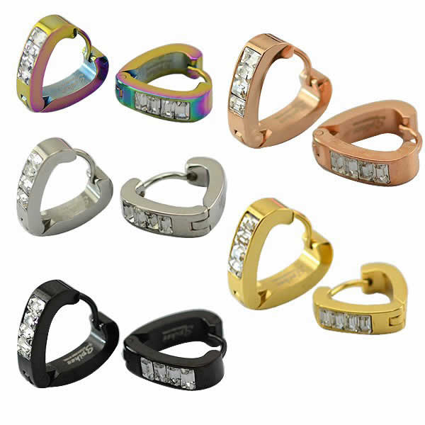 緩やかなトライアングル型のフープピアスにジルコニアをセットした高級感のあるリングピアス。フープの色も選べるので、スタイルに合ったコーデが楽しめる。1個から買えるので、左右違う色を付けても面白い。素材も安心のサージカルステンレス。