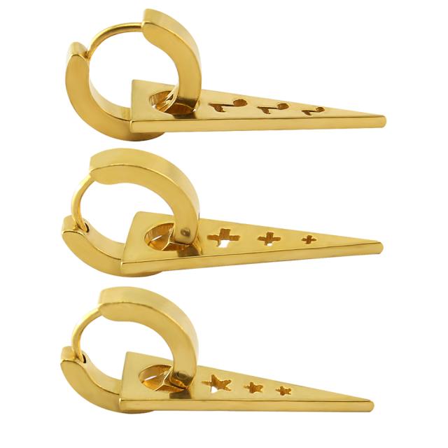 ゴールドトライアングルチャームフープピアス (スター クロス ミュージック)1個販売 片耳 星 十字架 音符 音楽 ステンレスピアス リングピアス メンズ レディース サージカルステンレス316L 金色 18G 18ゲージ 軟骨 耳 三角形 綺麗 結婚式 職場 パーティ 2次会 ギフト