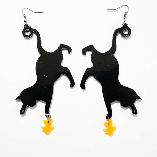 黒猫が金魚を取る様子をデザインしたユニークなステンレスピアス。キャットの黒と金魚のオレンジのコントラストのきいたステンレスピアス。コスプレにも最適。浴衣やハロウィンにもぴったりのステンレスピアスです。フック部分がステンレスなので安心。別売りのイヤリングパーツに付け替えて、イヤリングにもできる。自分で付け替えるのは、ちょっとって人は、お気軽にお申し付けください。