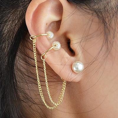 トリプルパールイヤーカフ ステンレスピアス 1個販売 真珠 イヤカフ 3個 チェーンピアス 低アレルギー レディース ペア イヤリング キャッチピアス 軟骨と耳たぶ 結婚式 発表会 2次会 卒業式 入学式 サージカルステンレス316L 20G 20ゲージ パーティ 発表会 ウエディング