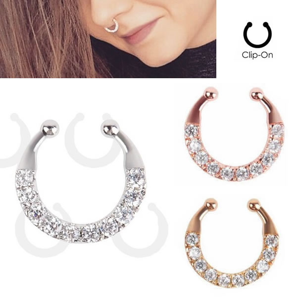 ピアスホールを開けずに装着できるクリップノーズセプタムリング。クリップ型なので、セプタムの位置だけでなくノーズリングとしてもイヤーカフとして耳にも、ニップルクリップなどいろいろなフェイクピアスに使えます。カラーも豊富でスタイルによって装着できる。ピアスを開けていなくても簡単に装着できるので、プレゼントにも!海外セレブの間でも話題のセプタムリングです。
