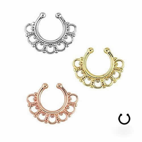ピアスホールを開けずに装着できるクリップノーズセプタムリング。クリップ型なので、セプタムの位置だけでなくノーズリングとしてもイヤーカフとして耳にも、ニップルクリップなどいろいろなフェイクピアスに使えます。カラーも豊富でスタイルによって装着できる。ピアスを開けていなくても簡単に装着できるので、プレゼントにも!海外セレブの間でも話題のセプタムリングです。