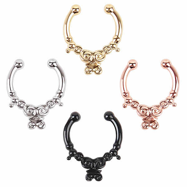 ピアスホールを開けずに装着できるクリップノーズセプタムリング。クリップ型なので、セプタムの位置だけでなくノーズリングとしてもイヤーカフとして耳にも、ニップルクリップなどいろいろなフェイクピアスに使えます。カラーも豊富でスタイルによって装着できる。ピアスを開けていなくても簡単に装着できるので、プレゼントにも!海外セレブの間でも話題のセプタムリングです。