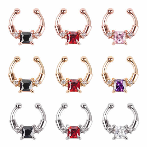 カラーバリエーションが豊富でビジューが高級感を放つフェイクリング。ピアスホールを開けずに装着できるクリップノーズセプタムリング。クリップ型なので、セプタムの位置だけでなくノーズリングとしてもイヤーカフとして耳にも、ニップルクリップなどいろいろなフェイクピアスに使えます。カラーも豊富でスタイルによって装着できる。ピアスを開けていなくても簡単に装着できるので、プレゼントにも!海外セレブの間でも話題のセプタムリングです。