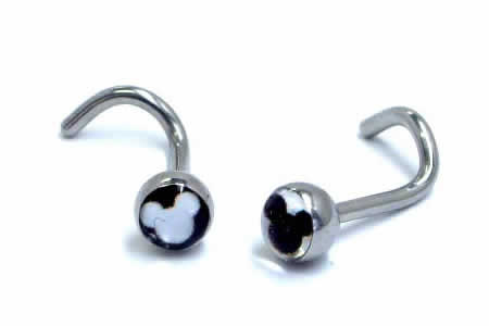 白黒のモノトーンでデザインした可愛いグリーンピアッシングオリジナルキャラクター鼻ピアス。