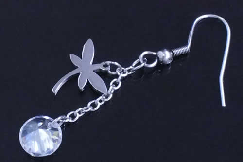 ジュエリンフックピアス(トンボ) 1個販売 サージカルステンレス ステンレスピアス ひっかけるタイプ 耳 メンズ レディース 低アレルギー 揺れる ジルコニア クリスタル アメリカンピアス 20G 20ゲージ シングルピアス ラインストーン 蜻蛉 ドラゴンフライ