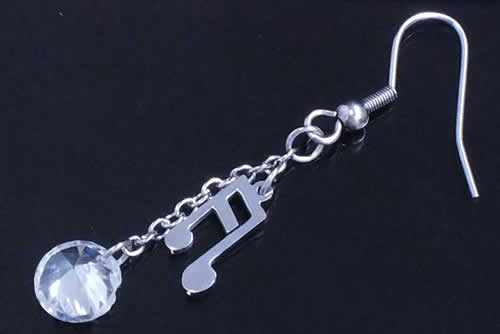 ジュエリンフックピアス(リズム) 1個販売 サージカルステンレス ステンレスピアス ひっかけるタイプ 耳 メンズ レディース 低アレルギー 揺れる ジルコニア クリスタル アメリカンピアス 20G 20ゲージ シングルピアス ラインストーン 音譜 ミュージック