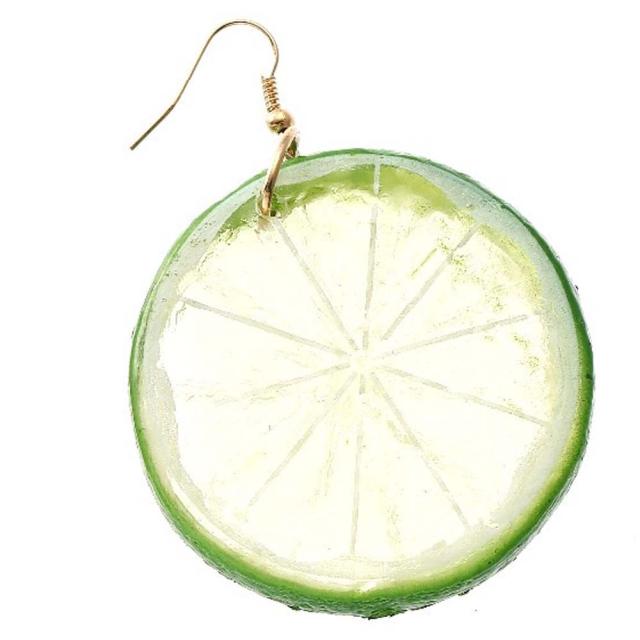 立体的にデザインされた3Dの輪切りのライムにサージカルステンレス製のピアスフックを付けたステンレスピアス。フルーツ大好きな人にオススメの果物ピアス。