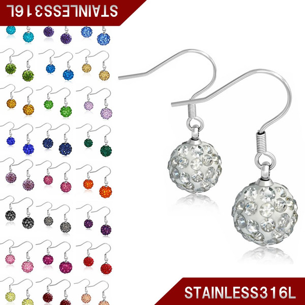 パベステンレスフックピアス(10mm)/1個販売 ボール キラキラ パヴェ サージカルステンレス316L アメリカンピアス ステンレスピアス フックピアス メンズ レディース 金属アレルギーが出にくい 揺れる 20G 20ゲージ 結婚式 2次会 入学式 パーティ 大きい 大きめ ビッグ