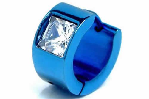 重厚感のあるブルーリングピアスのセンターに大きめのスクエアカットされたキュービックジルコニアが輝くステンレスピアス。真っ青のフープピアスと眩しく輝くジルコニアのコントラストが綺麗なサージカルリング。フープピアスのセンター部分から中折れするワンタッチタイプのリングピアスなので、ピアス初心者でも簡単に着脱出来るピアスです。素材も安心の医療用サージカルステンレスなので、ファーストピアスとしても使えるオススメのステンレスアクセサリーです。肉厚でしっかりとした作りと、ボディピアス好きならご存知のサージカルステンレスの輝きが、高級感を発揮してくれるサージカルアクセサリー。単品販売(片耳販売)なので、必要な数量だけ買えて、お値段もリーズナブルなので、いくつも揃えたくなるステンピアスです。